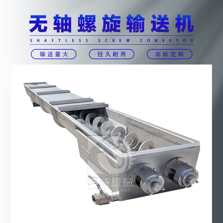 8、無軸螺旋輸送機扭矩大,能耗低。因為螺桿中沒有軸,物料不易阻塞,出料口不阻塞,能夠低速運行,驅(qū)動平穩(wěn),降低能耗。扭矩可達4000N.m。